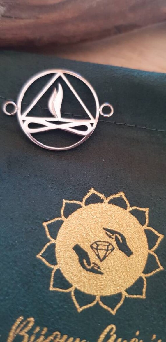 A fantastic technique to illustrate the dualism of the twin flames. Two flames are shown burning harmoniously inside a triangle in the symbol. An infinity symbol turned on its side representing the neverending journey back to the self perfectly symbolizing the Twin Flames.